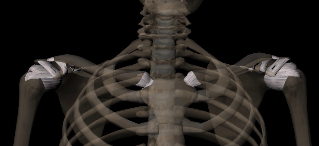 Det handlar om nyckelbenen och lederna där de fäster in vid bröstbenet och ut mot axeln. Finns det någon rörelse i de lederna? (Både när du sitter till häst och när du bara är människa)