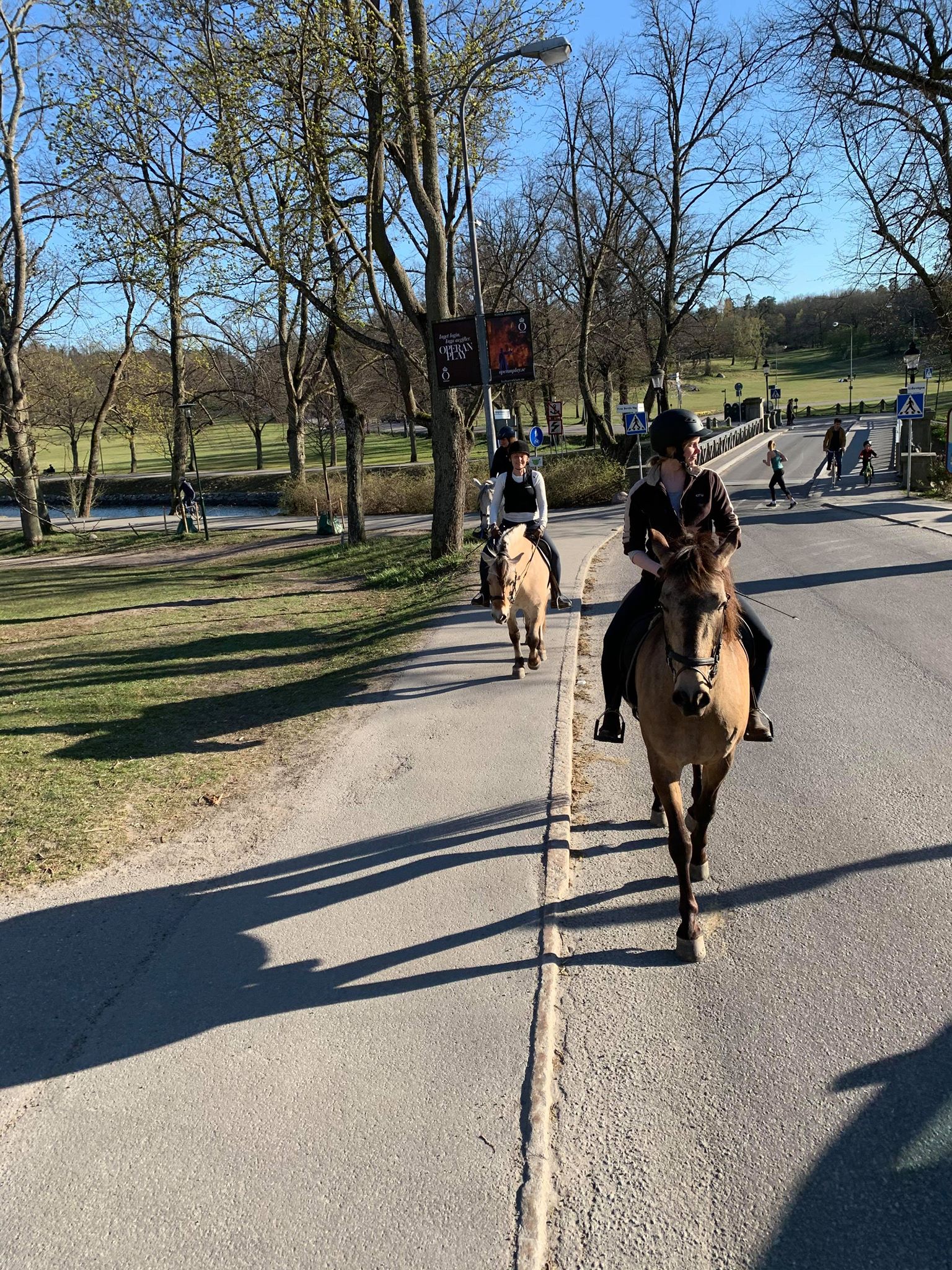 På mitt jobb på Häståkeriet i Stockholm har vi börjat erbjuda kombi-ritter för små grupper, vi rider en timme på ridbanan och sedan fortsätter vi med en timmes uteritt på Djurgården. Det är helt fantastiskt roligt att få njuta av en härlig ridtur på Stockholms bästa ridvägar!