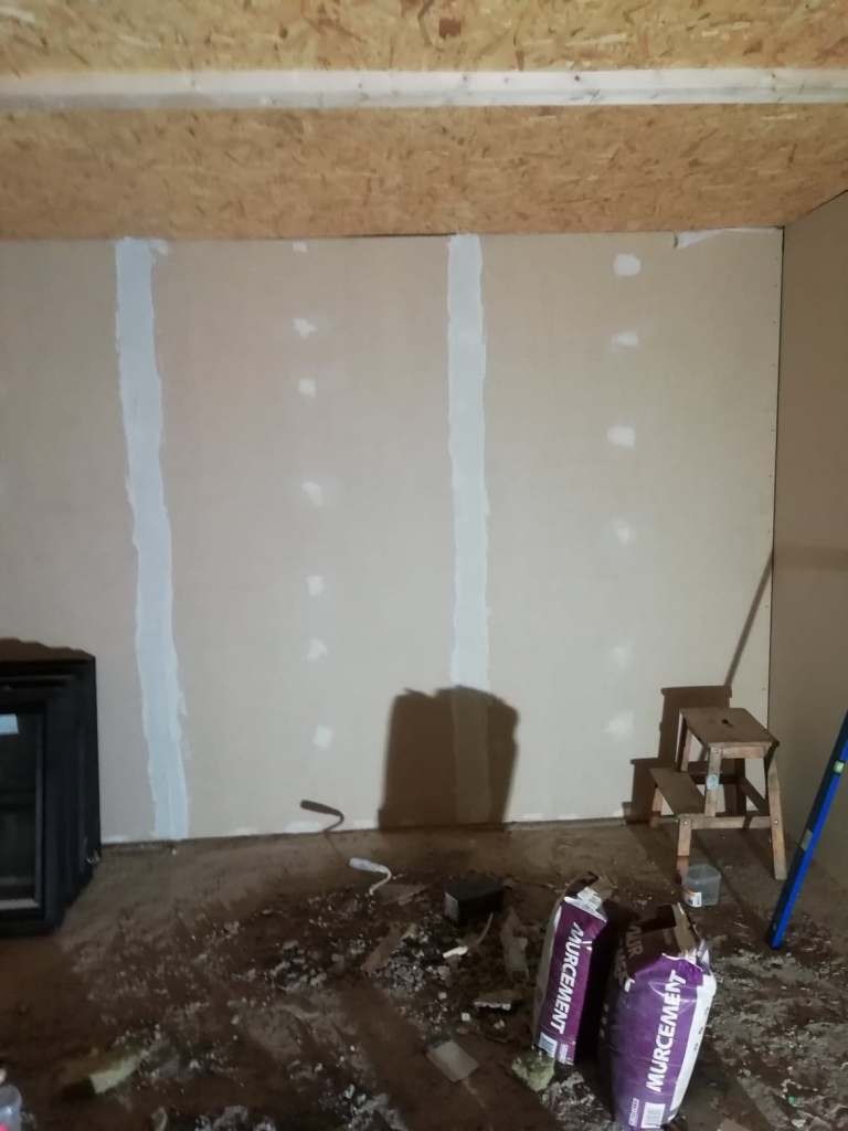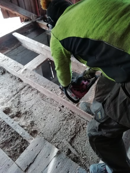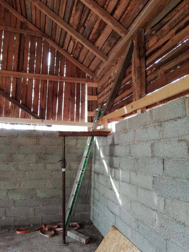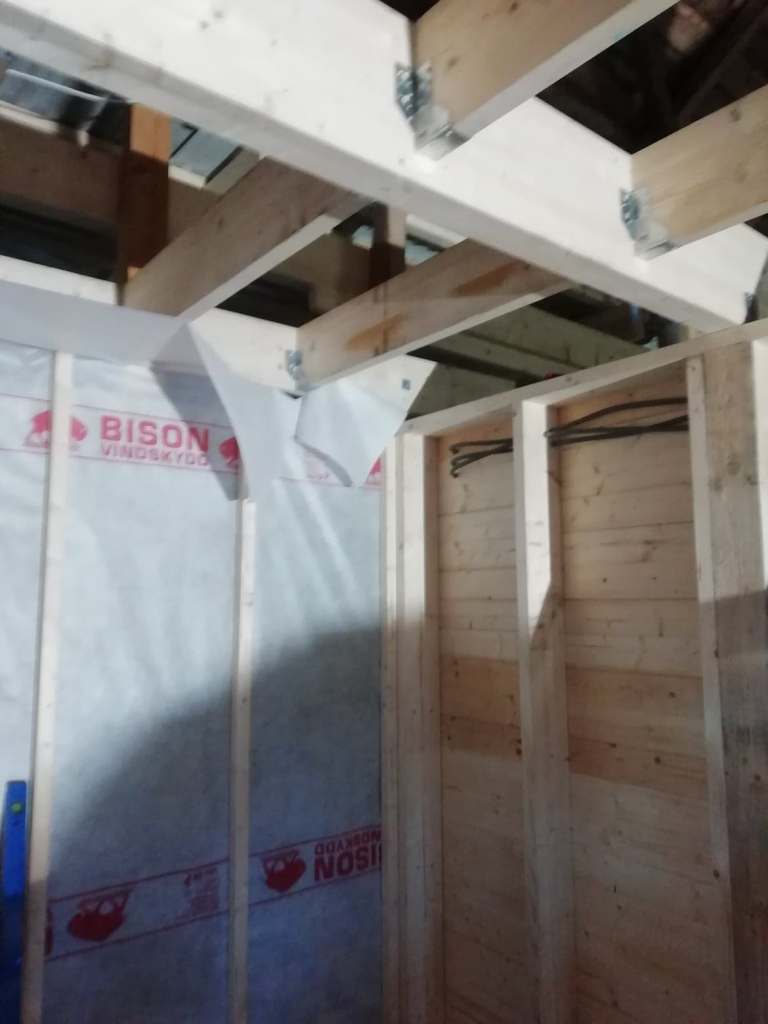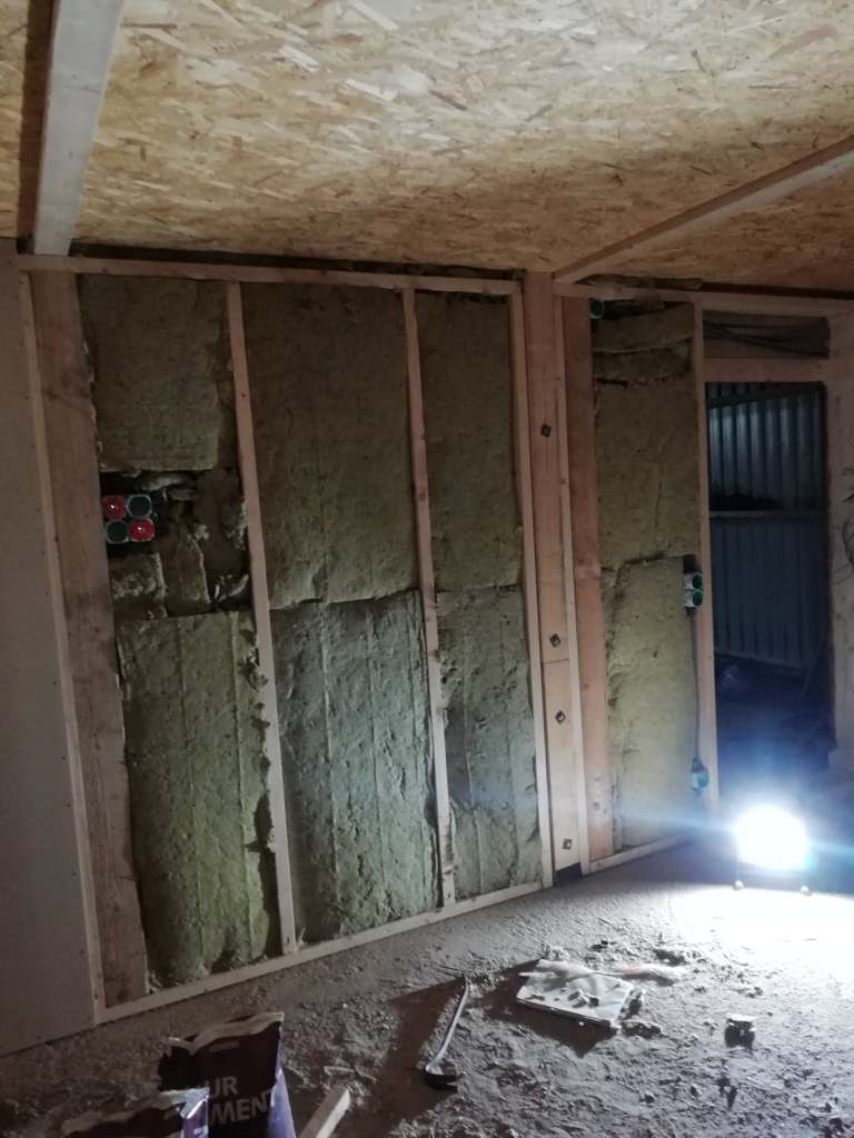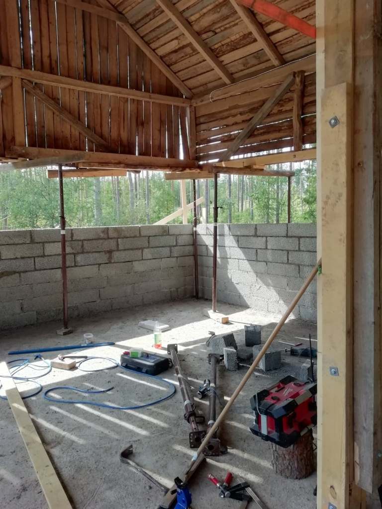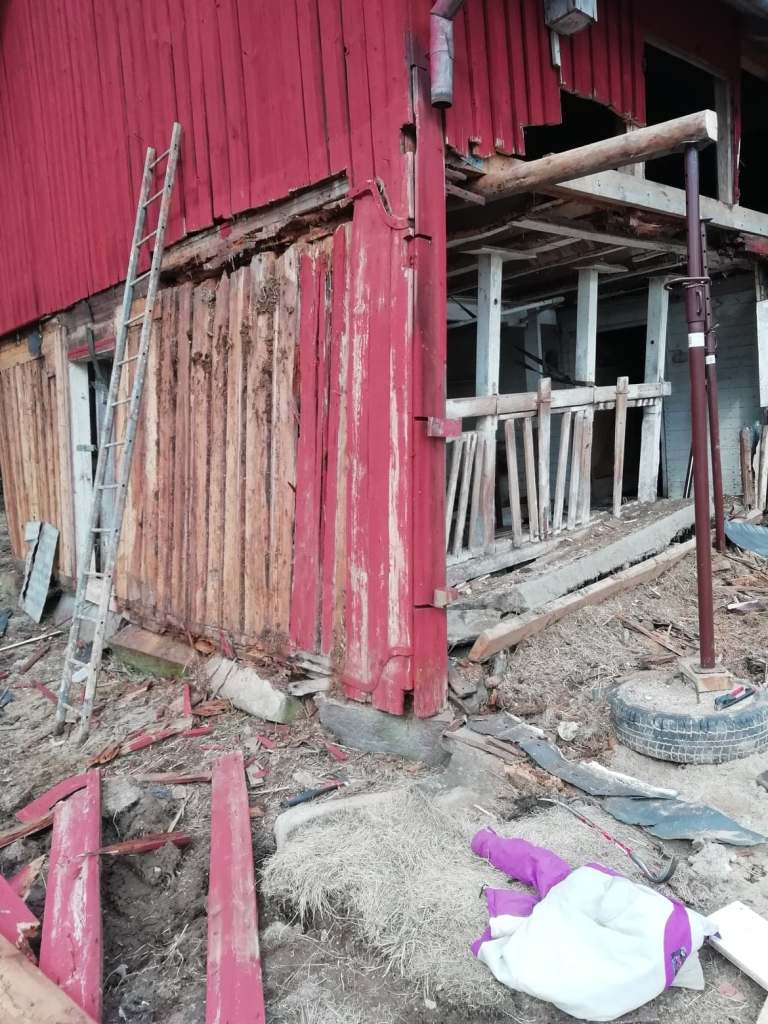 Steg ett var att riva; väggar, tak och golv. Under ca 6 månader stod hela sadelkammaren på “stämp”.