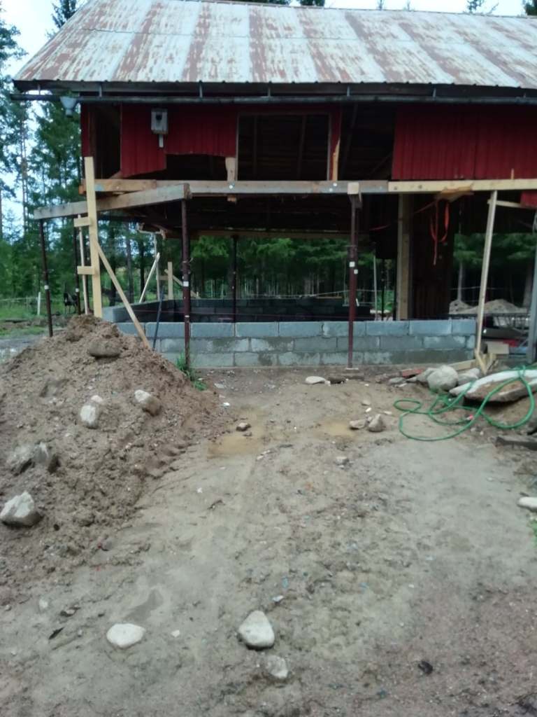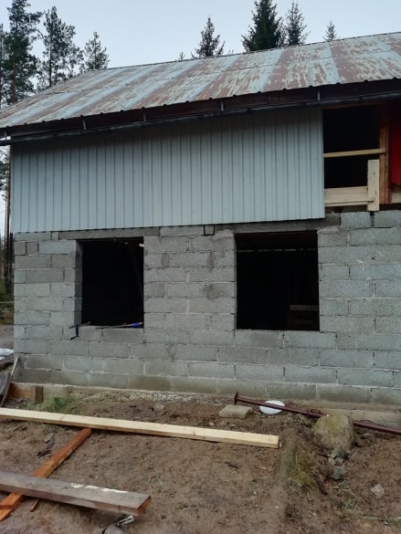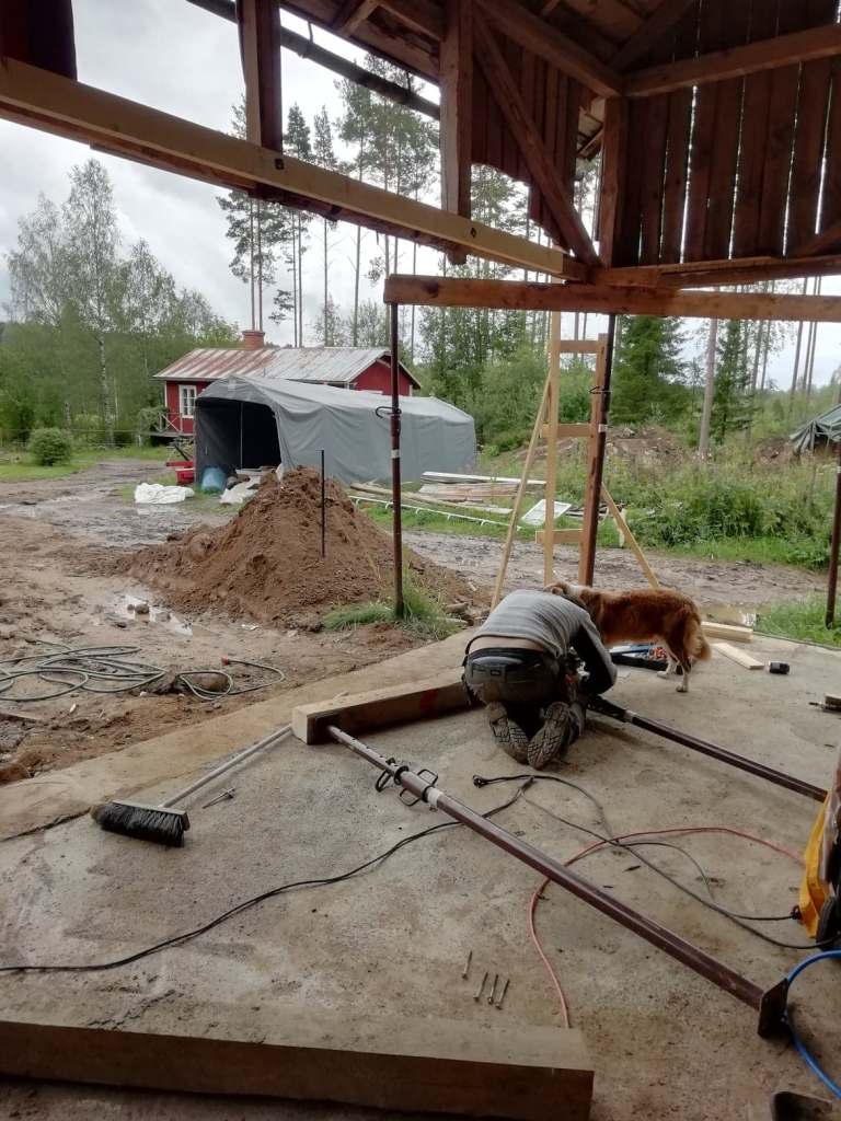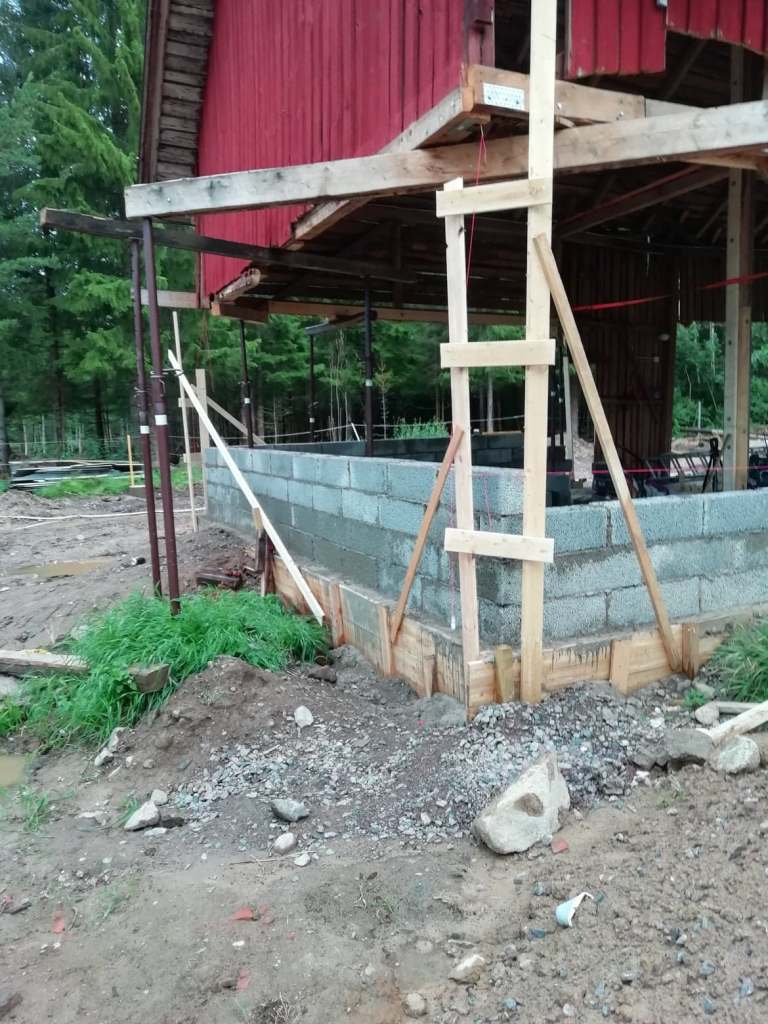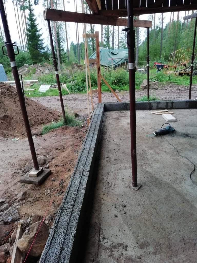 Sen skulle det grävas ut och gjutas, först en grov kantbalk och sedan en platta. Vi gjöt med en traktor-tombola. När cementen härdat kunde vi äntligen böja mura upp väggarna. Det gick på rätt fort och äntligen började man se resultat. Att riva, gräva, gjuta och dylikt var mycket jobbigare och eftersom att det knappt syns kändes det i perioder väldigt otacksamt och jobbigt.