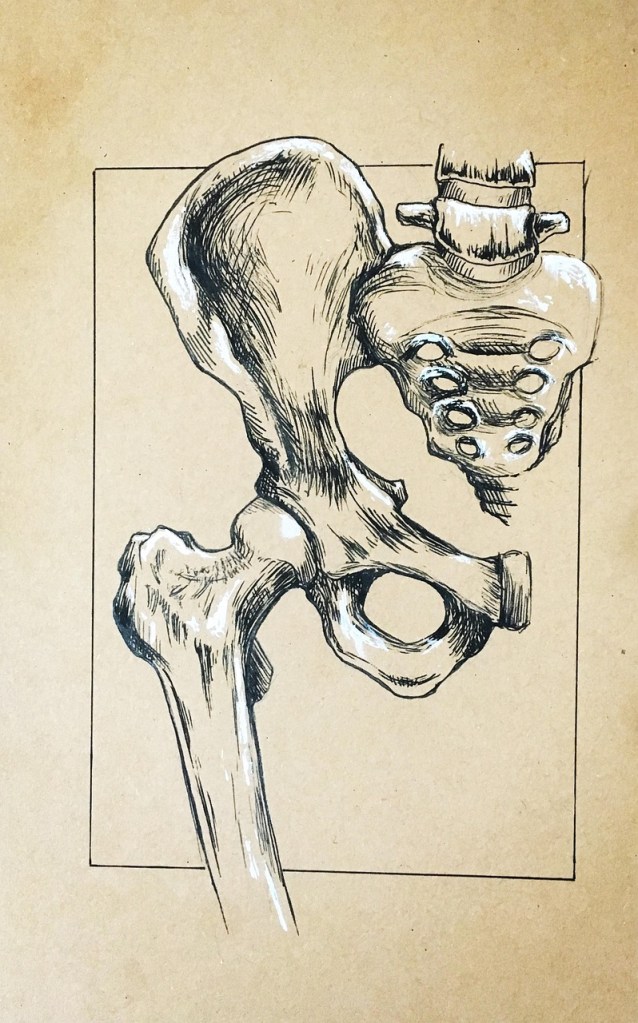 Då kom min hjärna på bilden av mitt kraftcentrum, min centrering, hur jag kunde tänka att om handen gick framåt så skulle min centrering gå bakåt så att jag blev mobilt stabilare i området av bäcken och korsben. Jag tänkte då att jag hade ett litet motstånd framför mig som jag mjukt tryckte in mina händer mot och genom den försöka hitta en aktivering lååångt ner i bäckenets bakre del så korsbenet både stabiliserade sig, så resten av ryggraden kunde växa upp ur den, och kunde tillåta viss rörlighet i lederna som kopplar ihop korsben och bäcken, att skapa en naturlig svank och där med också få ett trevligt nyttjande av psoas-musklerna/höftböjarmusklerna så jag kunde gå med hästen och inte slänga med benen. Det gjorde susen för ridningen där och då.